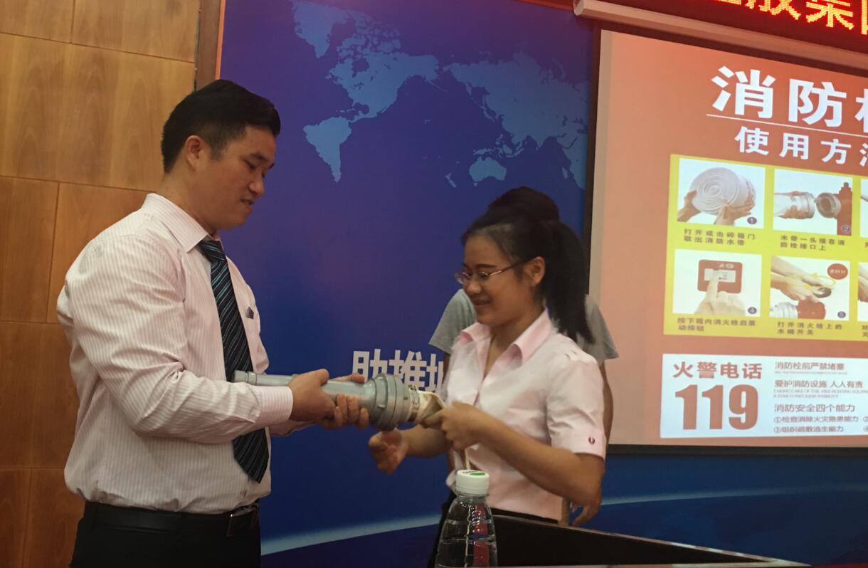 授課過程中,石經(jīng)理首先對消防安全知識做了細(xì)致的講解,著重介紹火災(zāi)的危害、學(xué)習(xí)消防知識的好處、單位消防安全“四個能力建設(shè)”以及滅火器材的使用方法等,使大家深刻認(rèn)識到掌握消防知識技能的重要性。隨后,石經(jīng)理通過現(xiàn)場互動,將理論和實踐相結(jié)合,讓學(xué)員們上臺具體演示了滅火器和消防栓的使用步驟,加深了學(xué)員們對消防自救器材的印象,以避免在火災(zāi)發(fā)生時造成更大的危害。最后,石經(jīng)理通過現(xiàn)場答疑,一一解答了學(xué)員們?nèi)粘9ぷ魃钪袑ο乐R的困惑。