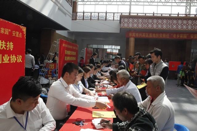 在工人員宣讀抽簽分房流程后,開(kāi)始抽簽分房。首先由各鄉(xiāng)鎮(zhèn)領(lǐng)導(dǎo)代表以鄉(xiāng)鎮(zhèn)為單位抽簽確定貧困戶(hù)選房順序,再由貧困戶(hù)逐戶(hù)進(jìn)行抽簽選房并確認(rèn)。當(dāng)天,經(jīng)過(guò)核驗(yàn)材料、抽房號(hào)、登記信息、簽訂合同等一系列程序后,參加此次來(lái)賓市興賓區(qū)易地扶貧搬遷“老鄉(xiāng)家園”安置點(diǎn)分房?jī)x式的455戶(hù)貧困戶(hù),除36戶(hù)因材料核驗(yàn)未通過(guò)外,419戶(hù)都抽到了新房。除抽簽分房外,當(dāng)天,就業(yè)服務(wù)中心還與每戶(hù)貧困戶(hù)簽訂了就業(yè)培訓(xùn)協(xié)議,興賓區(qū)工管委領(lǐng)導(dǎo)與貧困戶(hù)簽訂幫扶協(xié)議。