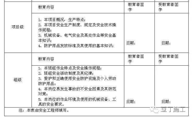 6、執(zhí)行入場(chǎng)教育、現(xiàn)場(chǎng)教育、崗位教育等三級(jí)教育。