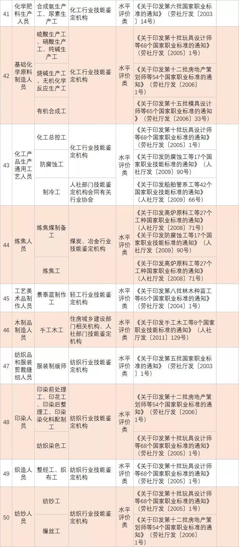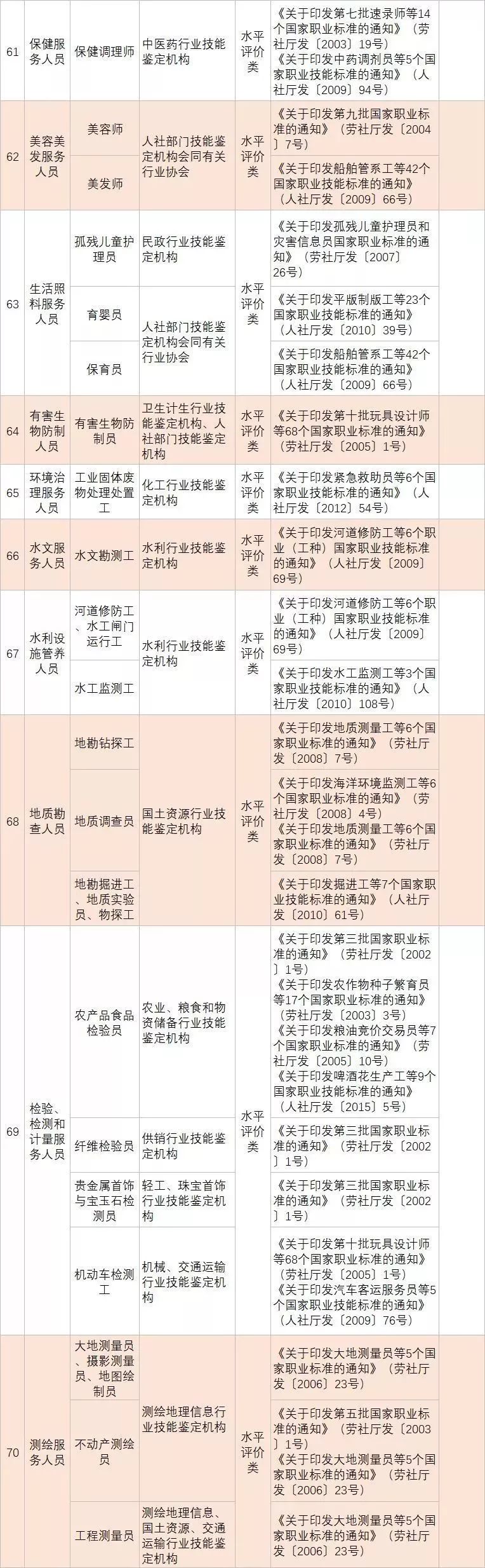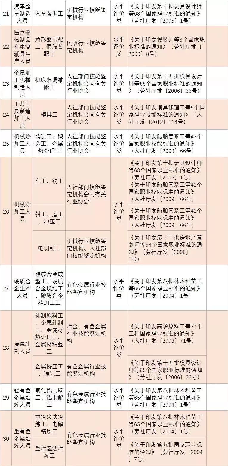 (四)深化技能人員職業(yè)資格制度改革。鞏固職業(yè)資格改革成果,完善國家職業(yè)資格目錄。對準(zhǔn)入類職業(yè)資格,繼續(xù)保留在國家職業(yè)資格目錄內(nèi)。對關(guān)系公共利益或涉及國家安全、公共安全、人身健康、生命財產(chǎn)安全的水平評價類職業(yè)資格,要依法依規(guī)轉(zhuǎn)為準(zhǔn)入類職業(yè)資格。對與國家安全、公共安全、人身健康、生命財產(chǎn)安全關(guān)系不密切的水平評價類職業(yè)資格,要逐步調(diào)整退出目錄,對其中社會通用性強、專業(yè)性強、技術(shù)技能要求高的職業(yè)(工種),可根據(jù)經(jīng)濟(jì)社會發(fā)展需要,實行職業(yè)技能等級認(rèn)定。