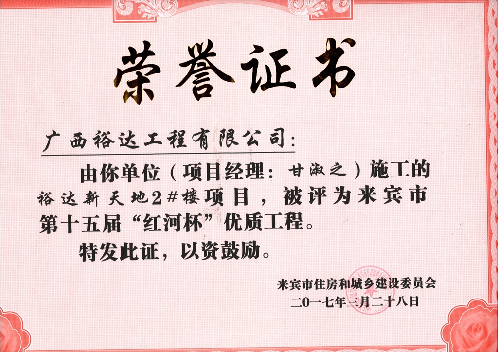 上一篇:2017年來(lái)賓市第十五屆“紅河杯”優(yōu)質(zhì)工程