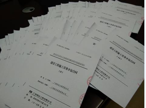 圖為現(xiàn)場簽訂完成的勞務(wù)分包合同展示