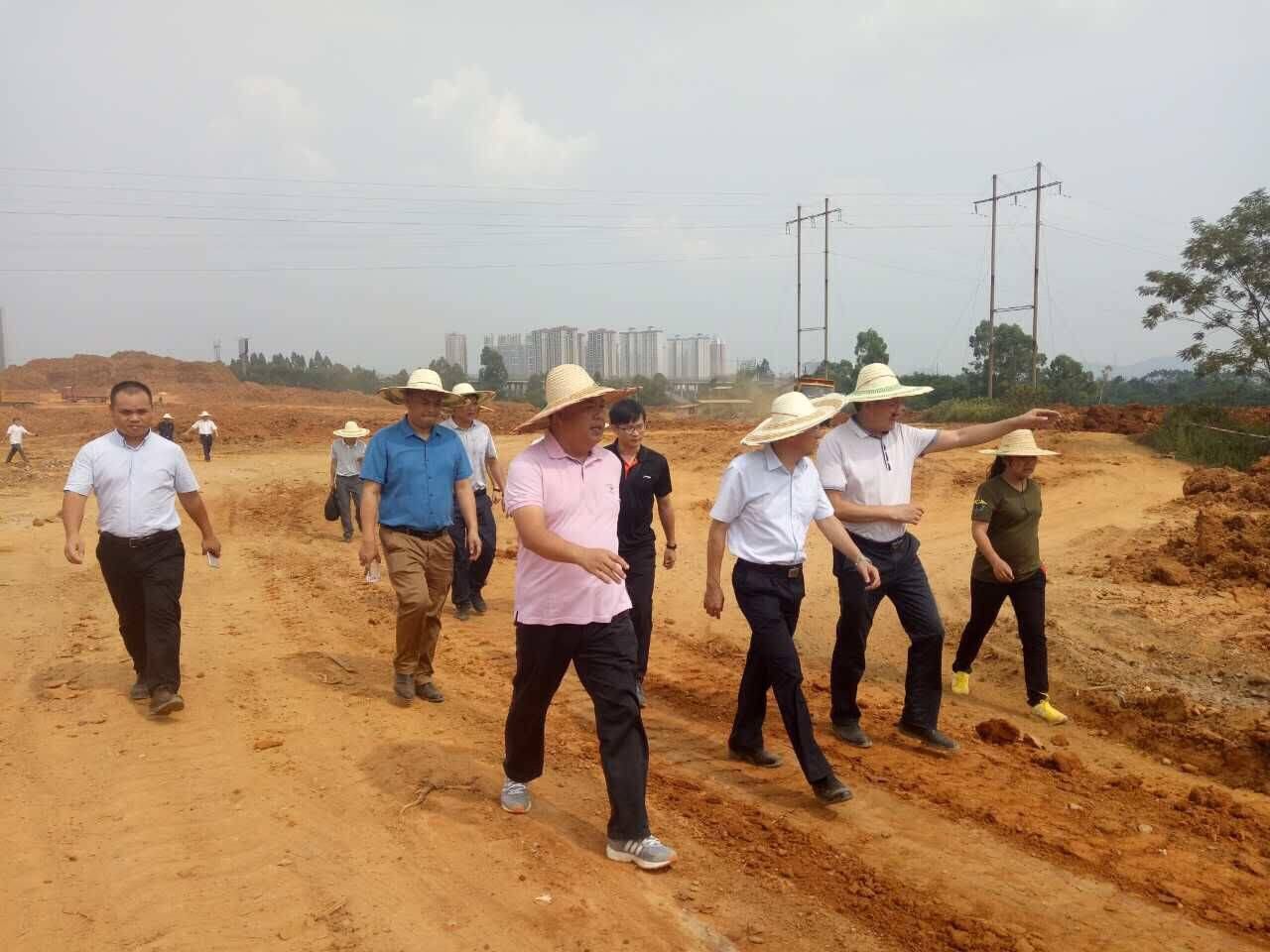 8月1日下午16時,紅河小鎮(zhèn)項目工地上,艷陽高照,機械轟鳴,隨著中巴車緩緩駛?cè)腠椖抗さ?,由來賓市市長雷應(yīng)敏、市人民政府副秘書長張桂延以及市發(fā)改委、市國土資源局等部門主要領(lǐng)導(dǎo)組成的調(diào)研組蒞臨工地現(xiàn)場視察。我集團董事長鄧亞保及公司相關(guān)領(lǐng)導(dǎo)在項目現(xiàn)場進行接待。