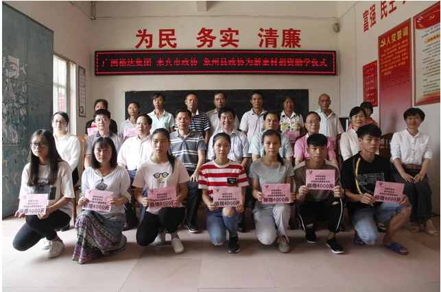 8月22日上午,象州新寨村16名貧困大學(xué)生每人都收到了來自裕達(dá)慈善基金會(huì)、來賓政協(xié)捐助的4000元助學(xué)資金。來賓市政協(xié)主席韋善國、象州縣委書記鄧應(yīng)文、象州縣政協(xié)主席翁秋德、我集團(tuán)副總裁梁鋒等領(lǐng)導(dǎo)出席了助學(xué)儀式。