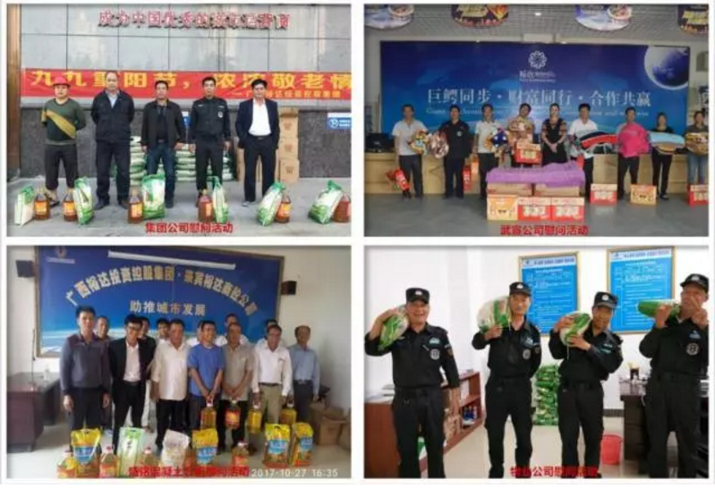 愛在重陽度金秋,樂享幸福桑榆景。在一年一度的九九重陽節(jié)到來之際,為肯定全集團(tuán)年長(zhǎng)員工的辛勤付出和貢獻(xiàn),度過一個(gè)溫馨、快樂的重陽佳節(jié),集團(tuán)公司、武宣裕達(dá)房地產(chǎn)開發(fā)有限公司、廣西盛銘混凝土有限公司、廣西裕達(dá)集團(tuán)物業(yè)服務(wù)有限公司等各子(分)公司開展了形式多樣的慰問活動(dòng),為年長(zhǎng)員工送上了滿滿的節(jié)日祝福。