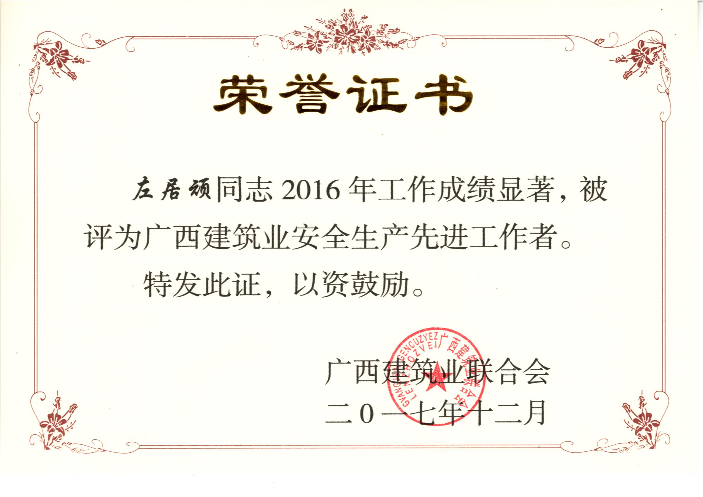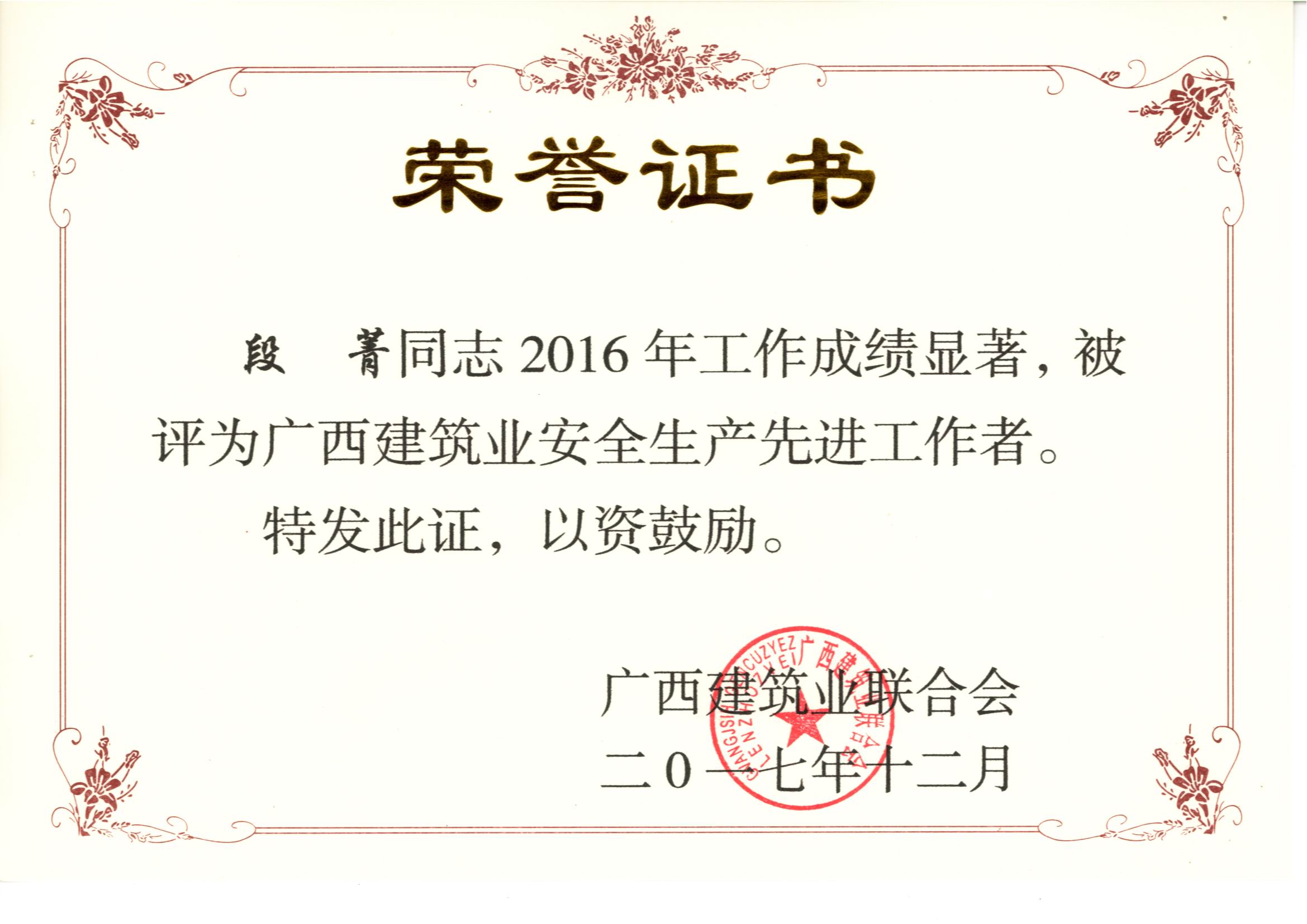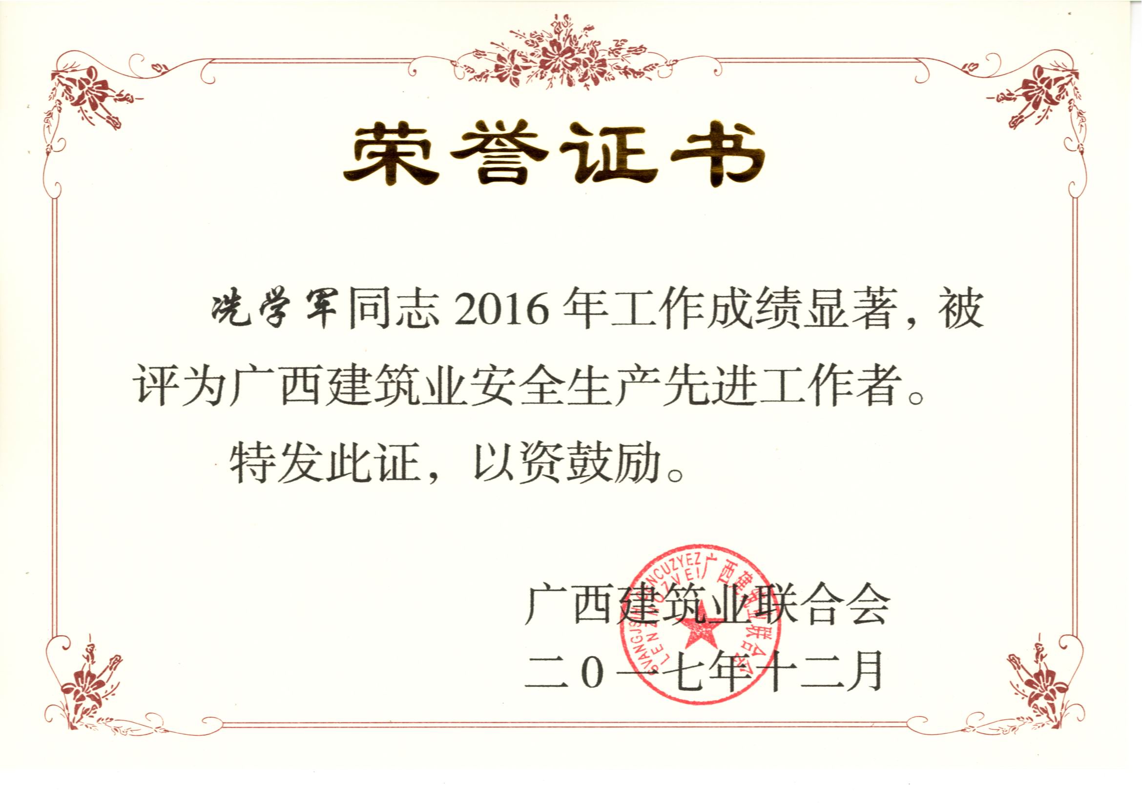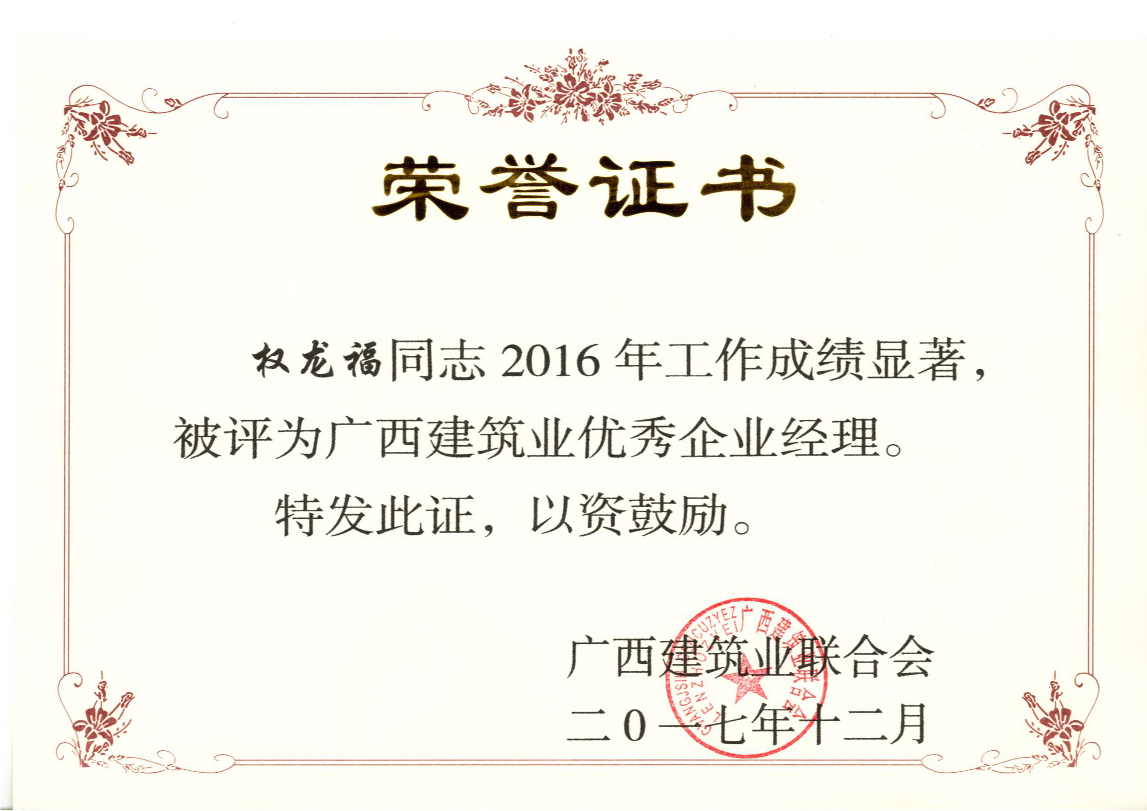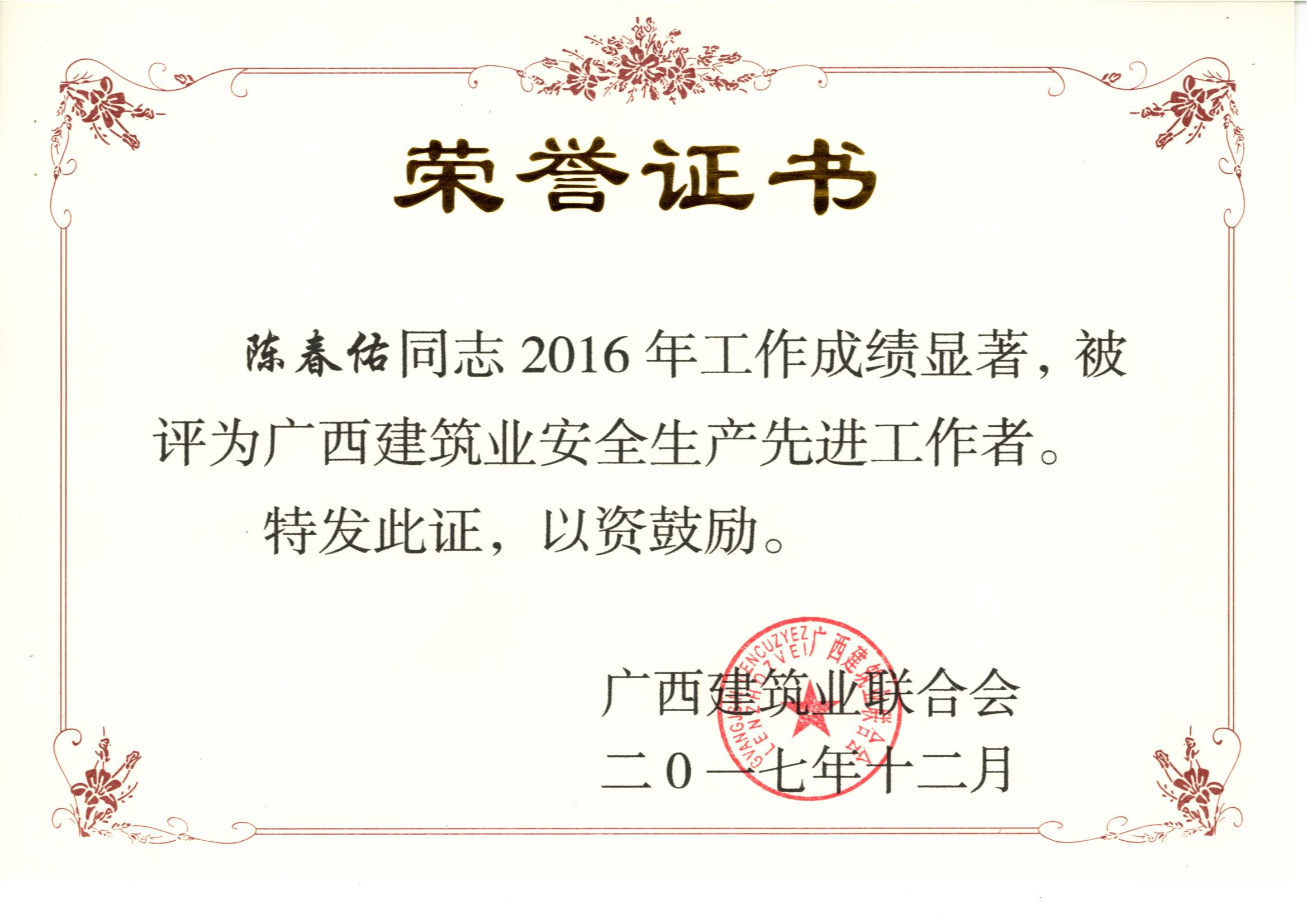 據(jù)悉,大會對廣西建筑行業(yè)2016年度的先進企業(yè)和優(yōu)秀個人進行表彰,我公司繼2015年度后再獲2016年度“廣西建筑業(yè)先進企業(yè)”、“廣西建筑業(yè)誠信企業(yè)”、“廣西建筑業(yè)質(zhì)量管理優(yōu)秀企業(yè)”、“廣西建筑業(yè)安全生產(chǎn)先進企業(yè)”和“廣西建筑業(yè)綠色施工先進單位”等榮譽稱號。我公司總經(jīng)理權(quán)龍福被評為“2016年度廣西建筑業(yè)優(yōu)秀企業(yè)經(jīng)理”,我公司韋延力、覃其成、胡凌毅、左居頑共4位同志被評為“2016年度廣西建筑業(yè)優(yōu)秀建造師”,我公司彭菱、韋秋鳳、覃其成、胡凌毅、韋鳳玲、陳春佑、左居頑、冼學軍、盧洋、段菁、覃登年共11位同志被評為“2016年度廣西建筑業(yè)安全生產(chǎn)先進工作者”。這些榮譽的背后是公司全體員工辛勤的汗水和默默無聞奉獻的結(jié)果,是公司積極踐行“工匠精神”的重要肯定,是公司的綜合實力的不斷提升和行業(yè)良好的信譽的充分體現(xiàn),再次將裕達工程的品牌影響力和競爭力提上新的臺階。