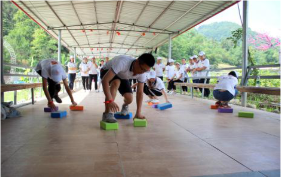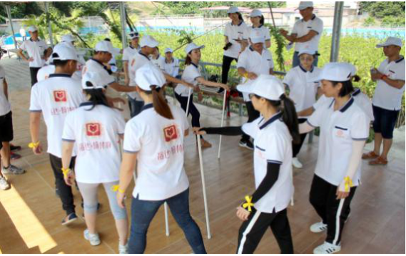 第三個游戲移行換位,主要培養(yǎng)了團結(jié)一致、克服困難、協(xié)調(diào)能力增進隊員間相互信任和理解的團隊精神。