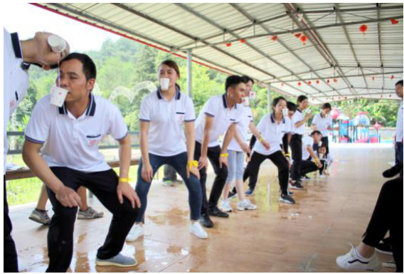 第四個游戲是銜紙杯傳水,考驗了隊員配合、協(xié)作能力、增進親近感,在歡笑中本次活動圓滿結(jié)束了。