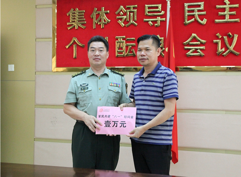在“八一”建軍節(jié)來臨之際,為增進(jìn)與部隊(duì)官兵的情感交流,共話軍民魚水情誼,7月30日,由集團(tuán)副總裁梁鋒、總裁助理?xiàng)钯O敏、楊碩、行政副總監(jiān)羅桂平、行政部經(jīng)理覃婷婷等一行領(lǐng)導(dǎo)組成慰問團(tuán),先后到武警來賓支隊(duì)、廣西陸軍預(yù)備役兵師第一團(tuán)、來賓市消防支隊(duì)、中國(guó)人民解放軍廣西來賓軍分區(qū)開展八一慰問活動(dòng),向部隊(duì)官兵表達(dá)了崇高的敬意并送去節(jié)日祝福。