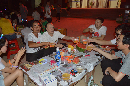 跑步結(jié)束后,緊接著燒烤活動(dòng)正式開始,隨著音樂響起,場面十分熱鬧,一片歡聲笑語的。員工們把燒烤桌拼在一起,有的在品者美味的燒烤,有的在玩游戲,有的在開心的交談著,場面溫暖而熱烈。