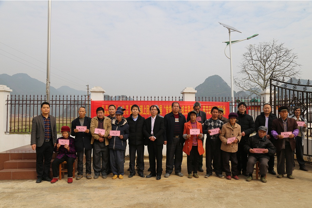 集團(tuán)公司黨支部聯(lián)合興賓區(qū)委辦在上團(tuán)村委為貧困戶(hù)送去慰問(wèn)金