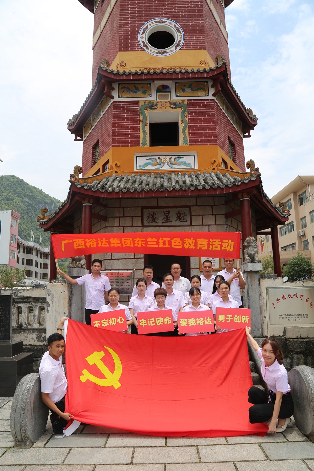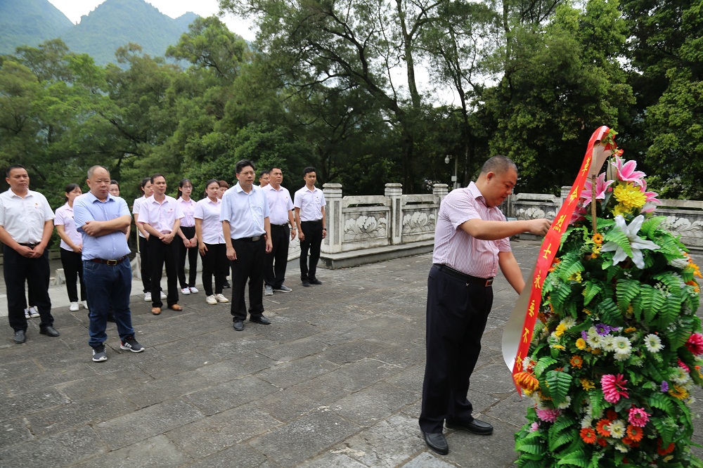 東蘭縣是全國(guó)著名的革命老區(qū),是全國(guó)最早開展農(nóng)民運(yùn)動(dòng)的地區(qū)之一,是廣西農(nóng)民運(yùn)動(dòng)的發(fā)祥地,是韋拔群、韋國(guó)清的故鄉(xiāng),為讓集團(tuán)黨員追尋革命先烈的足跡,銘記共產(chǎn)黨人的初心,在建黨98周年之際,2019年7月1日至2日集團(tuán)黨支部書記謝家偉帶領(lǐng)支部15名黨員代表赴東蘭縣開展“不忘初心、牢記使命”紅色教育活動(dòng),集團(tuán)公司董事長(zhǎng)兼總裁鄧亞保、廣西福毅德投資有限公司董事長(zhǎng)黃毅出席本次活動(dòng),城北街道黨工委組織干事盧玉妮受邀參加活動(dòng)。