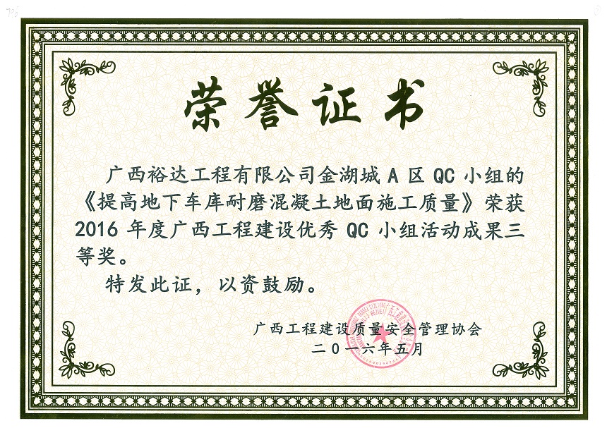 下一篇:2016年度廣西工程建設優(yōu)秀QC小組活動成果三等獎《地下室防水質量控制技術攻關》-金碧天譽QC小組