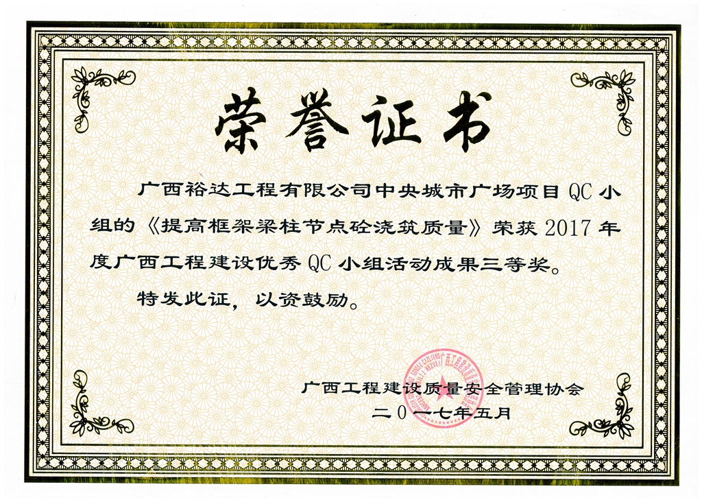 上一篇:2017年廣西工程建設(shè)優(yōu)秀QC小組活動成果三等獎