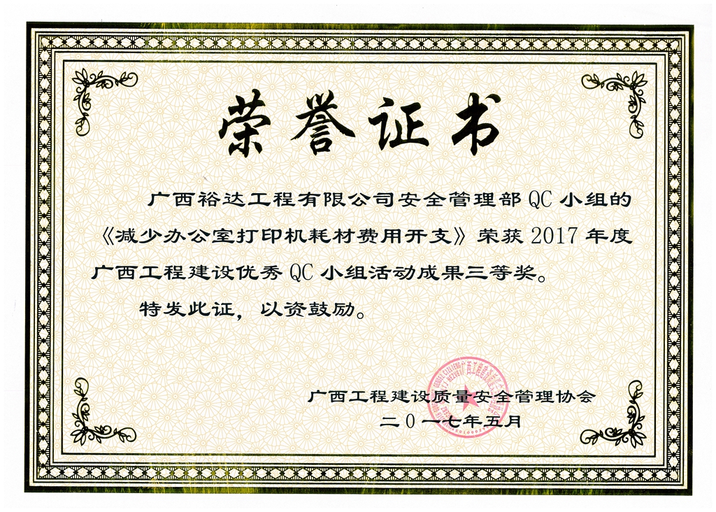 下一篇:2017年廣西工程建設(shè)優(yōu)秀QC小組活動(dòng)成果鼓勵(lì)獎(jiǎng)