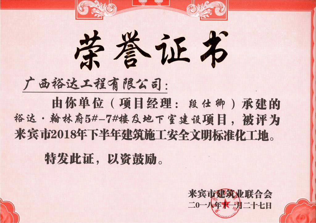 下一篇:來賓市2018年下半年安全文明標(biāo)準(zhǔn)化工地(裕達。裕嘉園5#、6#樓及地下室)