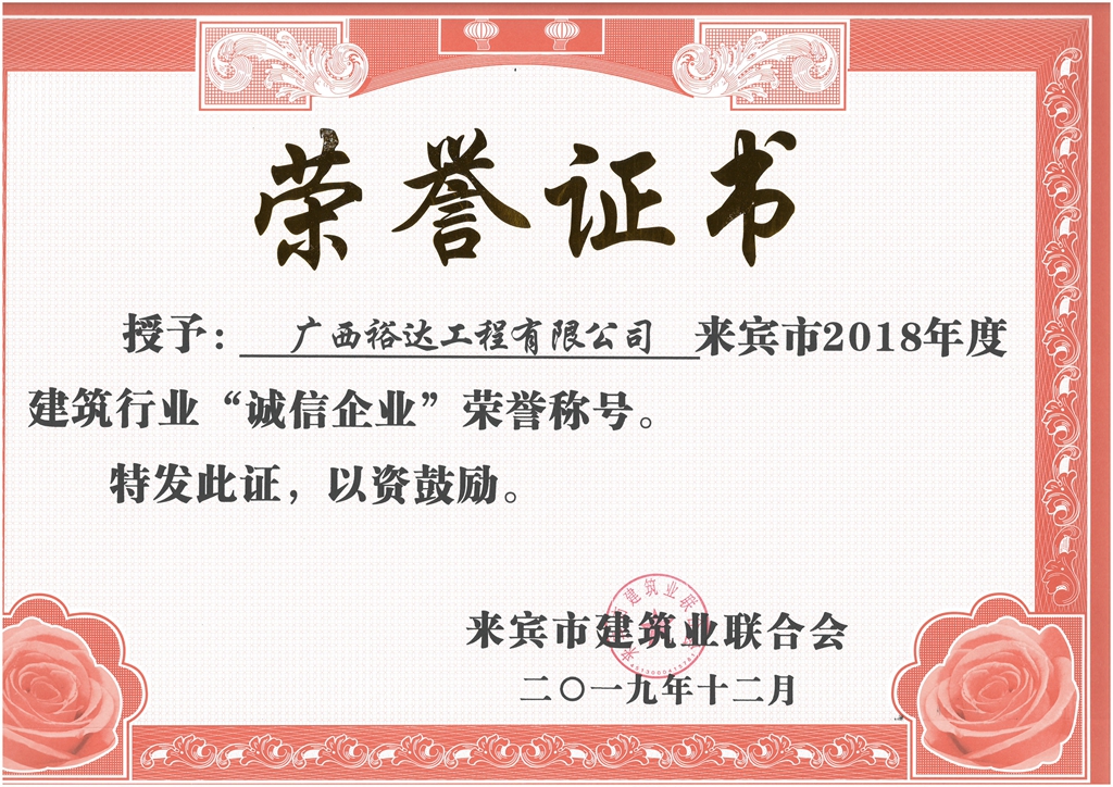 下一篇:來(lái)賓市2018年度建筑行業(yè)“先進(jìn)施工企業(yè)”