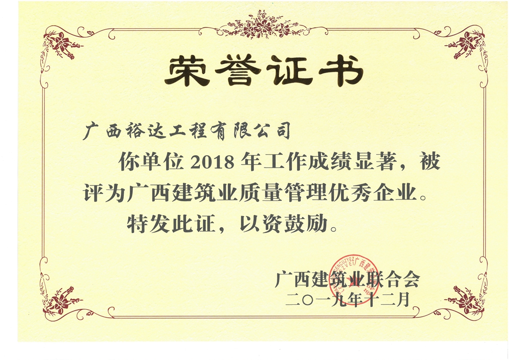上一篇:2018年廣西建筑業(yè)先進企業(yè)